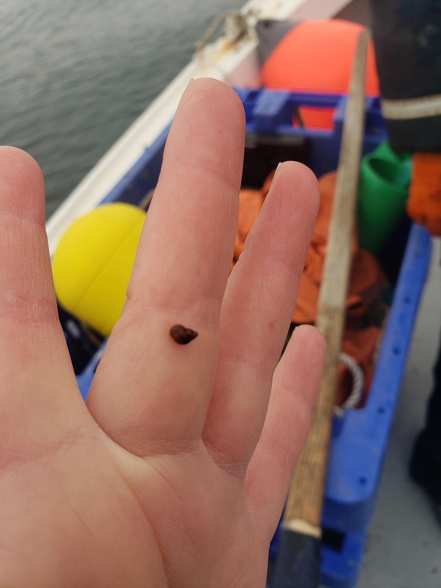 Hi everyone! I am a master's student at University of New England in Maine working with Dr. Carrie Byron to identify the timing and patterns of settlement and egg-laying of Lacuna vincta snails on kelp farms (picture attached).