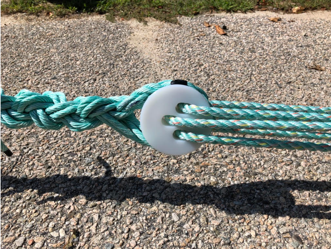 @clifford_goudey has shared his dead-eye tensioners in other posts; it's a three holed block, traditionally used in the rigging on sailing vessels. When a couple of tensioners are added to the mooring line, or other part of the farm system, it basically becomes a simple pulley to allow a farmer to take up slack on a mooring line without resetting an anchor.