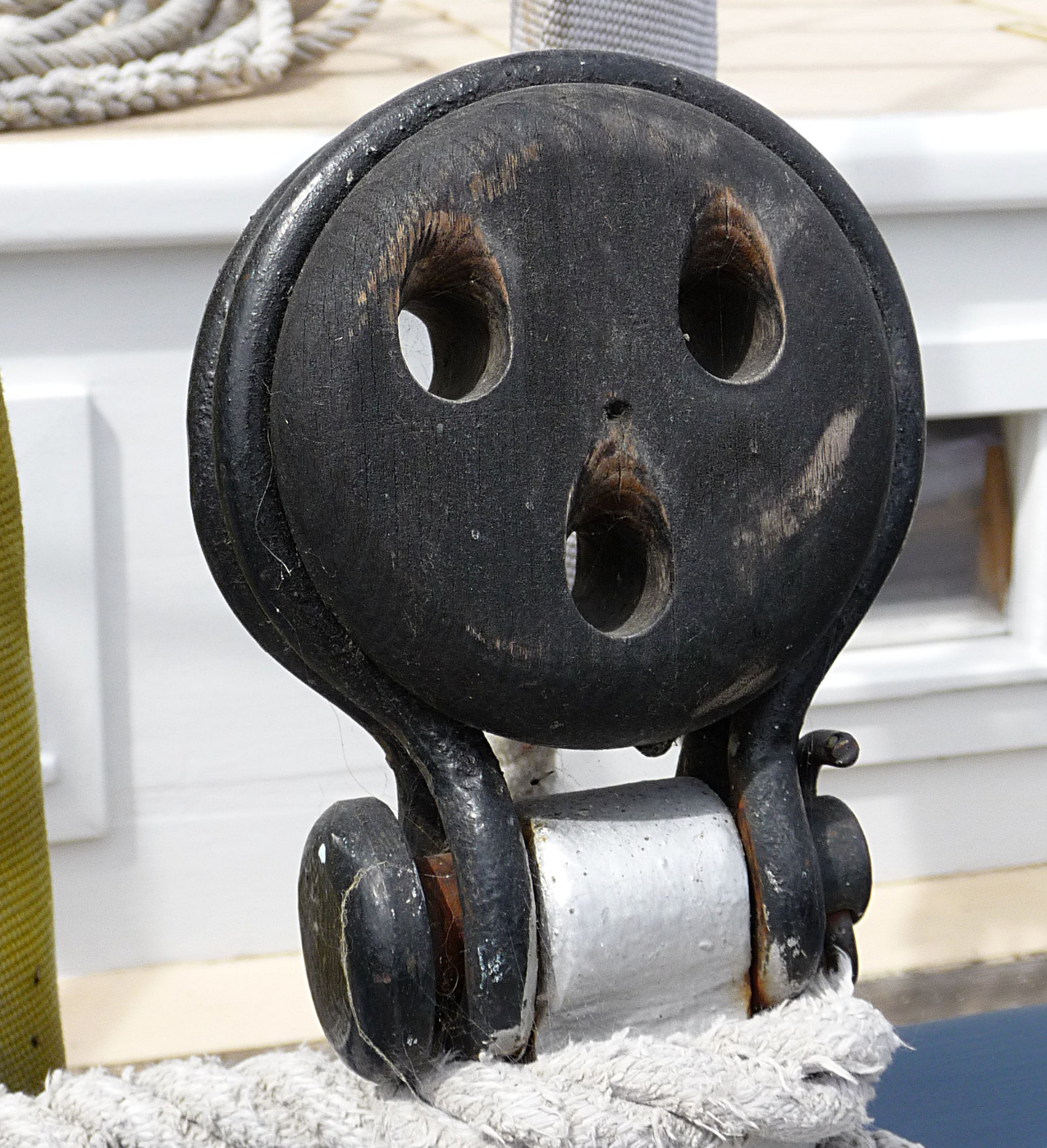 Here is a deadeye from an old sailing vessel (thanks Wikipedia):