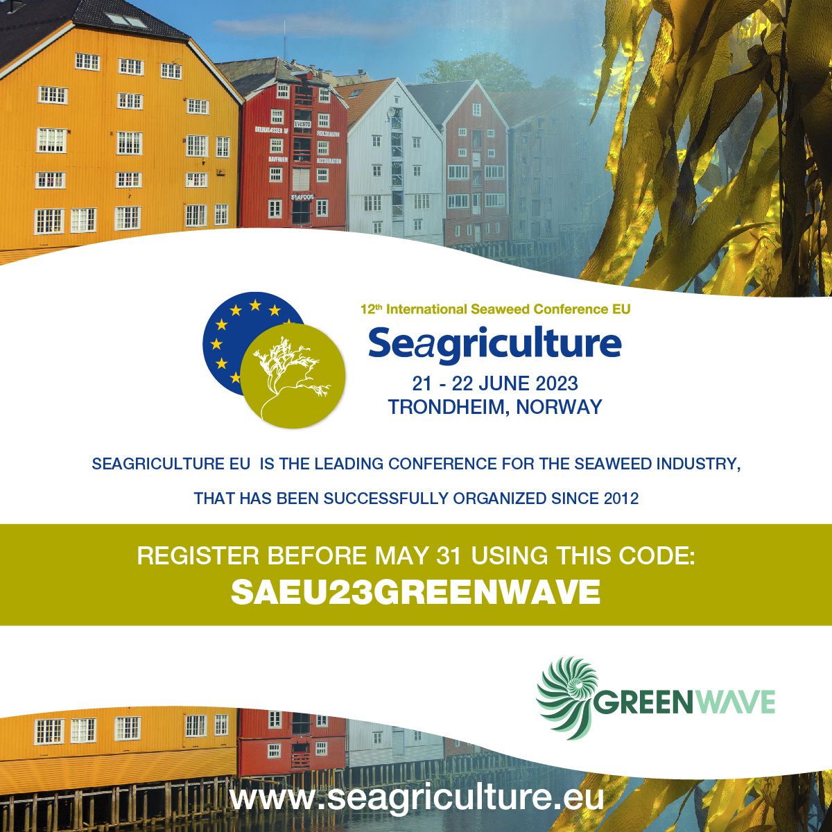 Interested in attending the upcoming Seagriculture Conference EU 2023 in Trondheim, Norway this June? Use code SAEU23GREENWAVE for a 10% discount on registration! Learn more at https://seagriculture.eu/