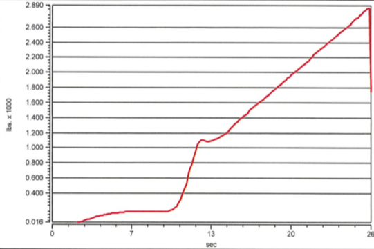 The knot on the left failed at 2,861 lbs, 57% of the breaking strength. It was a one-shot deal so we do not know if the other knot was going to last much longer but it looked OK. I can't seem to post a video, so here are the video frames just before and just after failure.