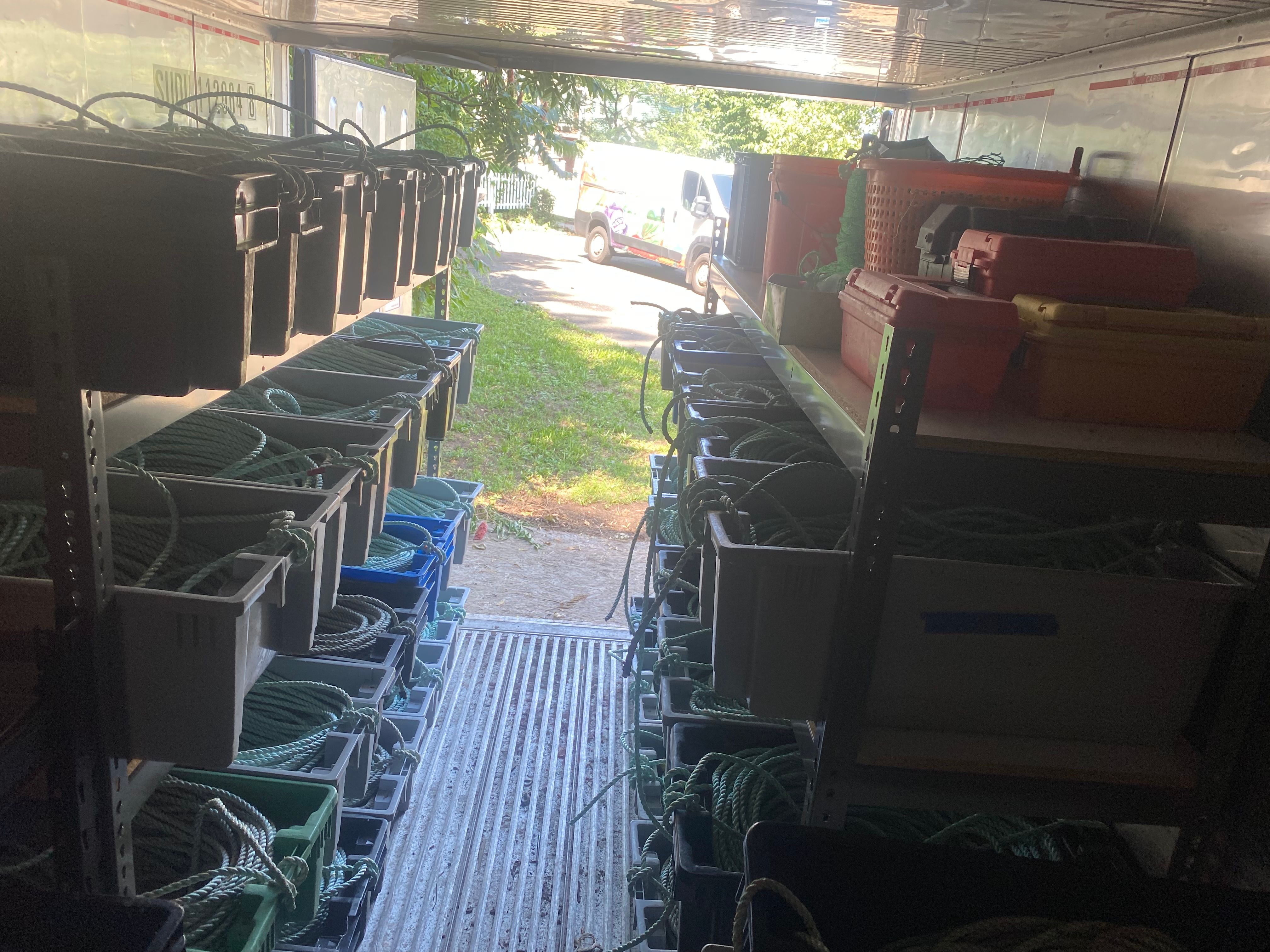 Hi all, things have slowed down on the water for us at GW but the work continues on land to prepare for next season. From going through our anchors and repairing gear, to making / stockpiling totes of grow line for next season’s deployment, to fabricating new seed spools for the upcoming seed production push.