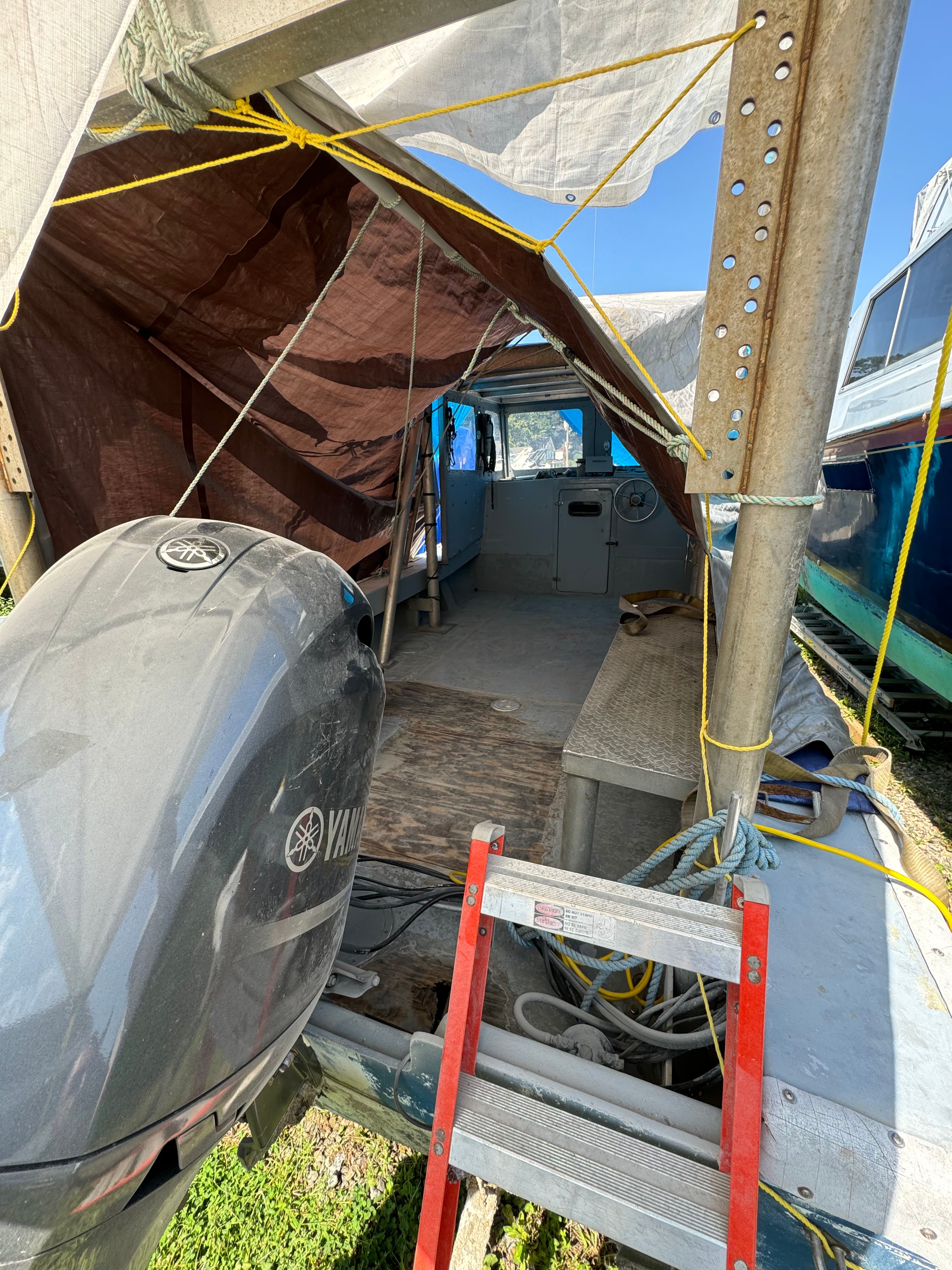 We are currently using our off season time to refurbish some of our work boats. Mookie is our main work horse and as such has a hard and active life throughout the season. We use it to load and deploy anchors and other heavy equipment on the farm, among other things. Pictured -preparing to reinforcing its deck.