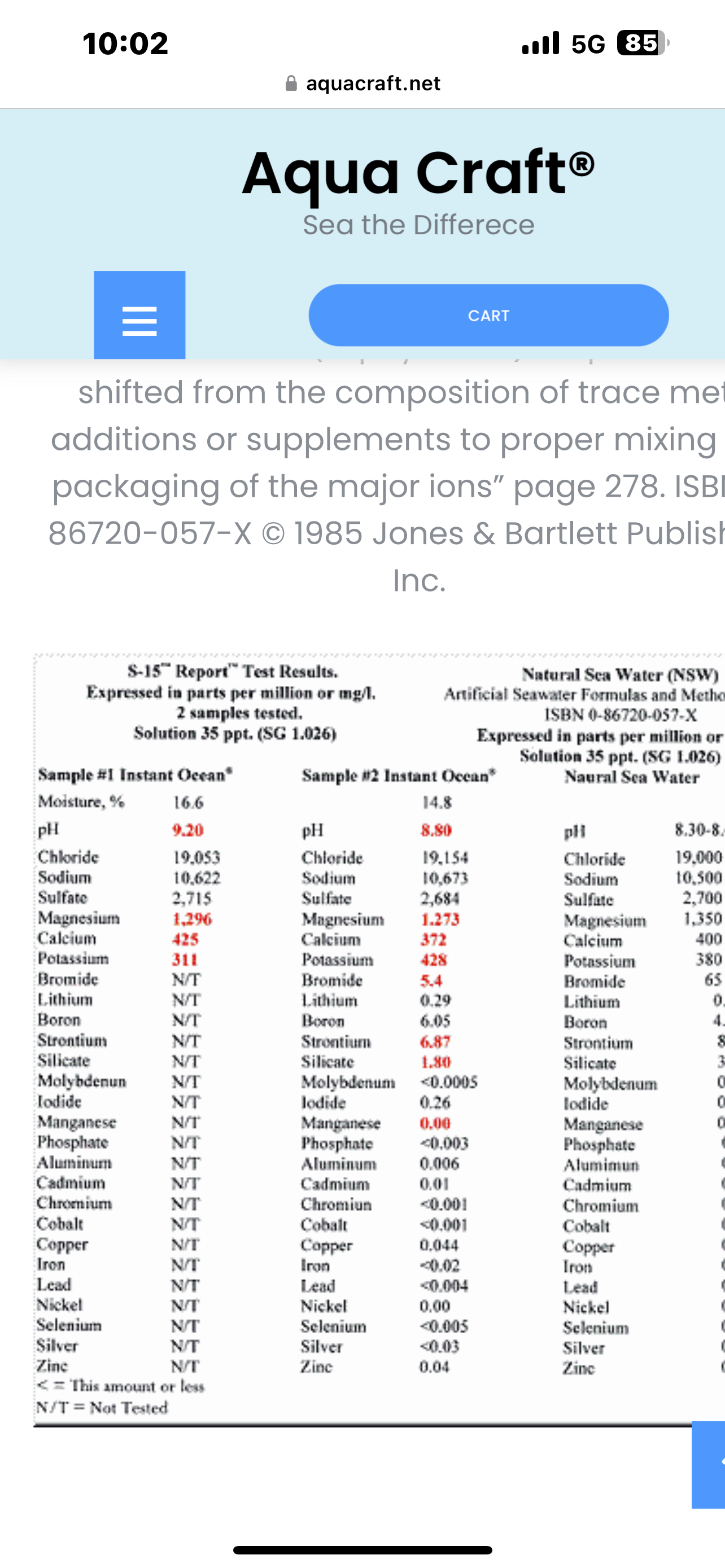 @tristan_s hey Tristan, I may have posted a chart that confused matters… I googled instant ocean ingredients/specifications and that’s what I got. I’m not setup to use actual ocean water and I believe instant ocean is the best and most widely used alternative for this purpose so I’m not sure what other choices I have…