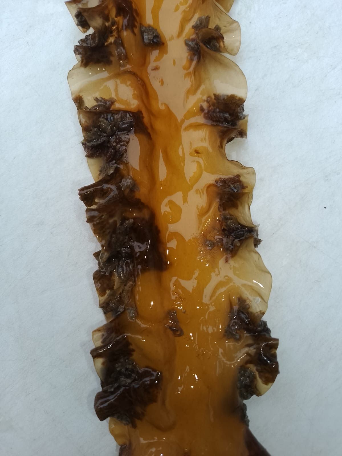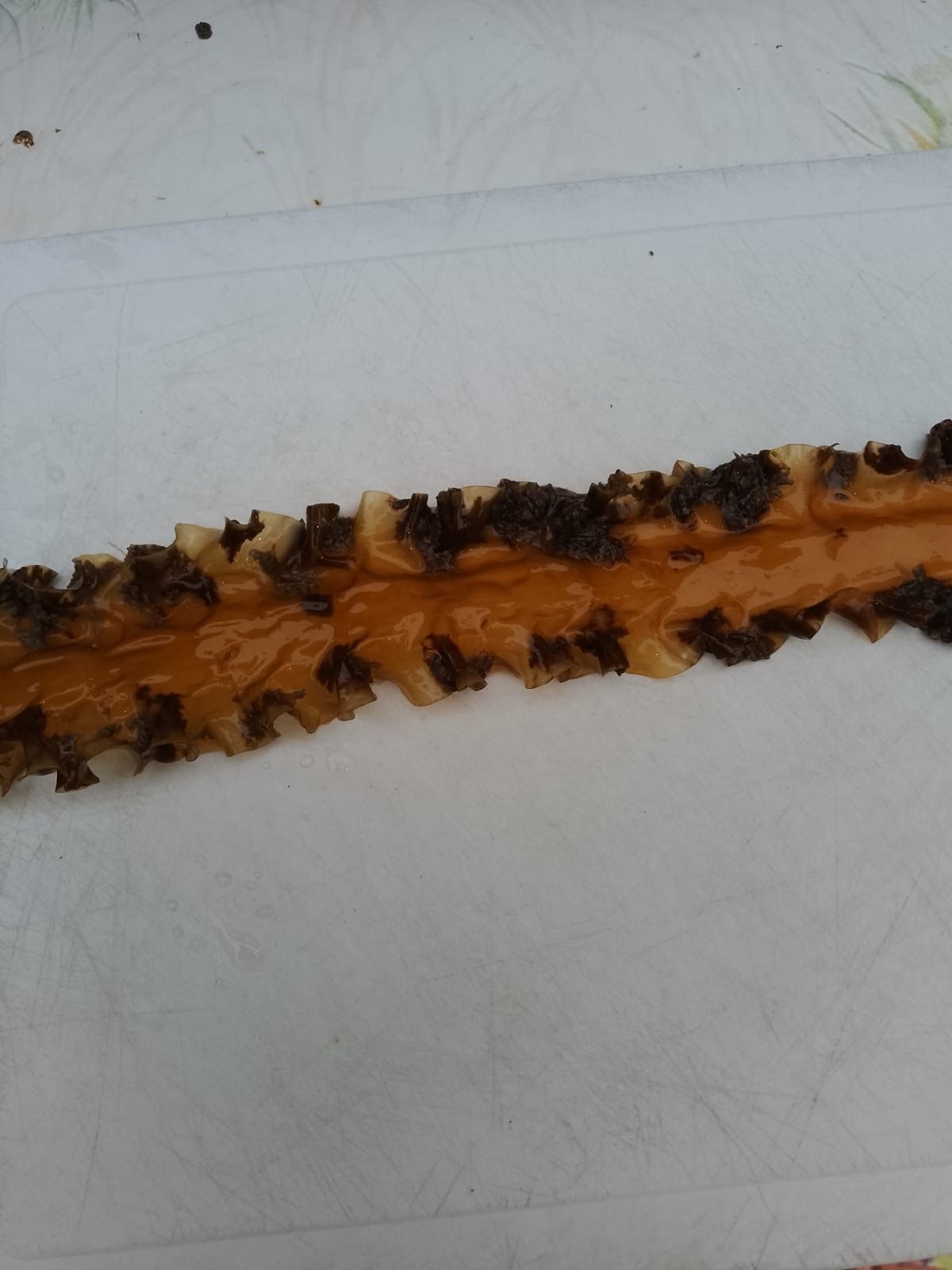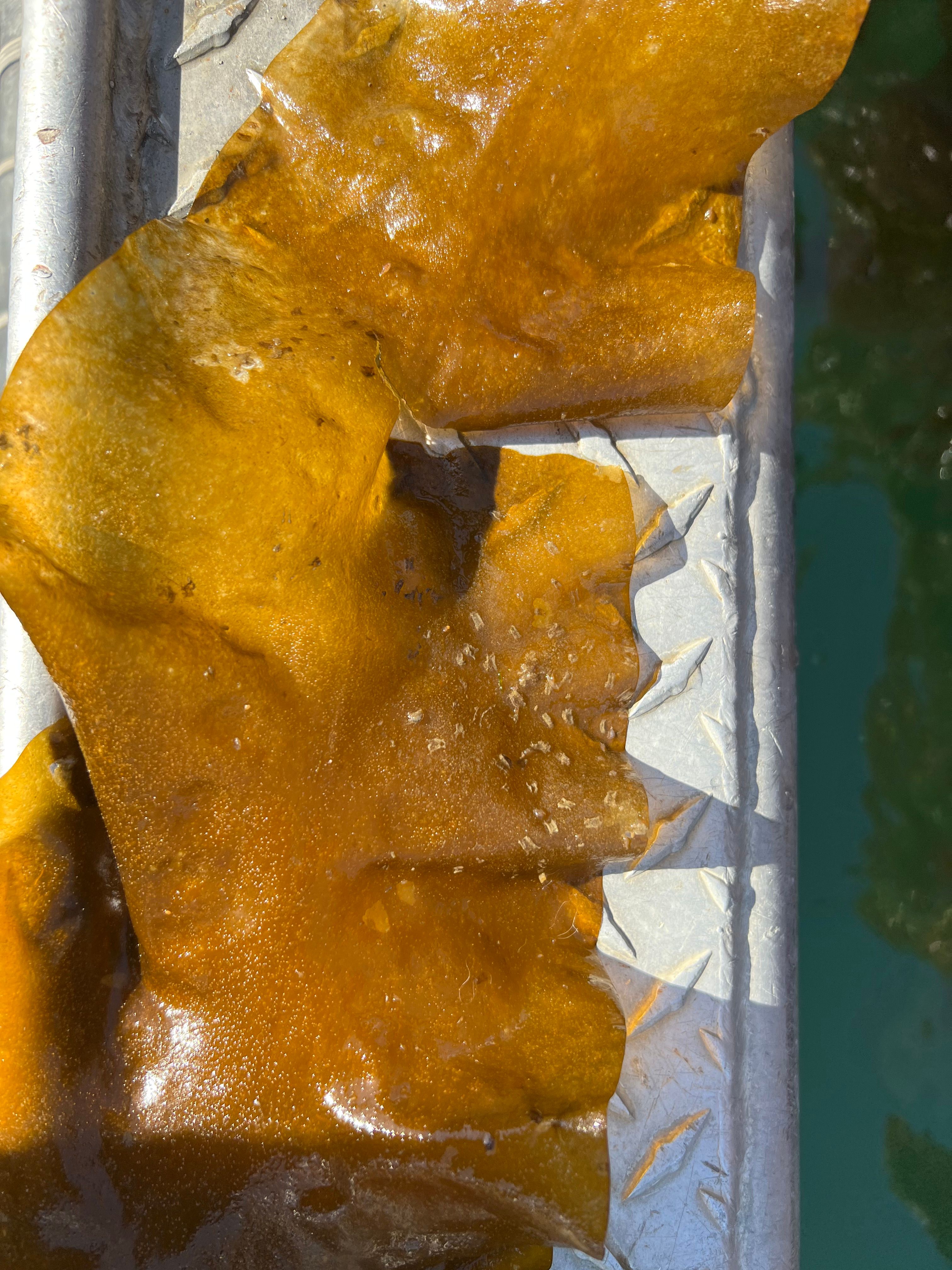 @lindsay_olsen Yes, we are considering harvesting earlier in the season, although our early seeding trials this year didn’t give great results. Unfortunately, trimming the blade tips isn’t a viable option for us since the biofouling appears along the entire length of the kelp. I’ll attach more pictures showing this on larger blades to give a better sense of it.