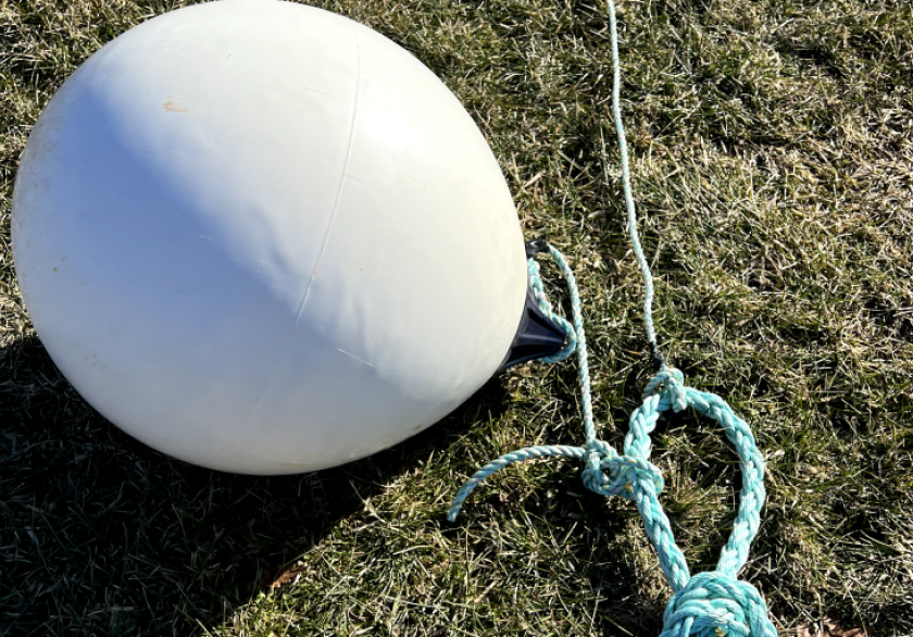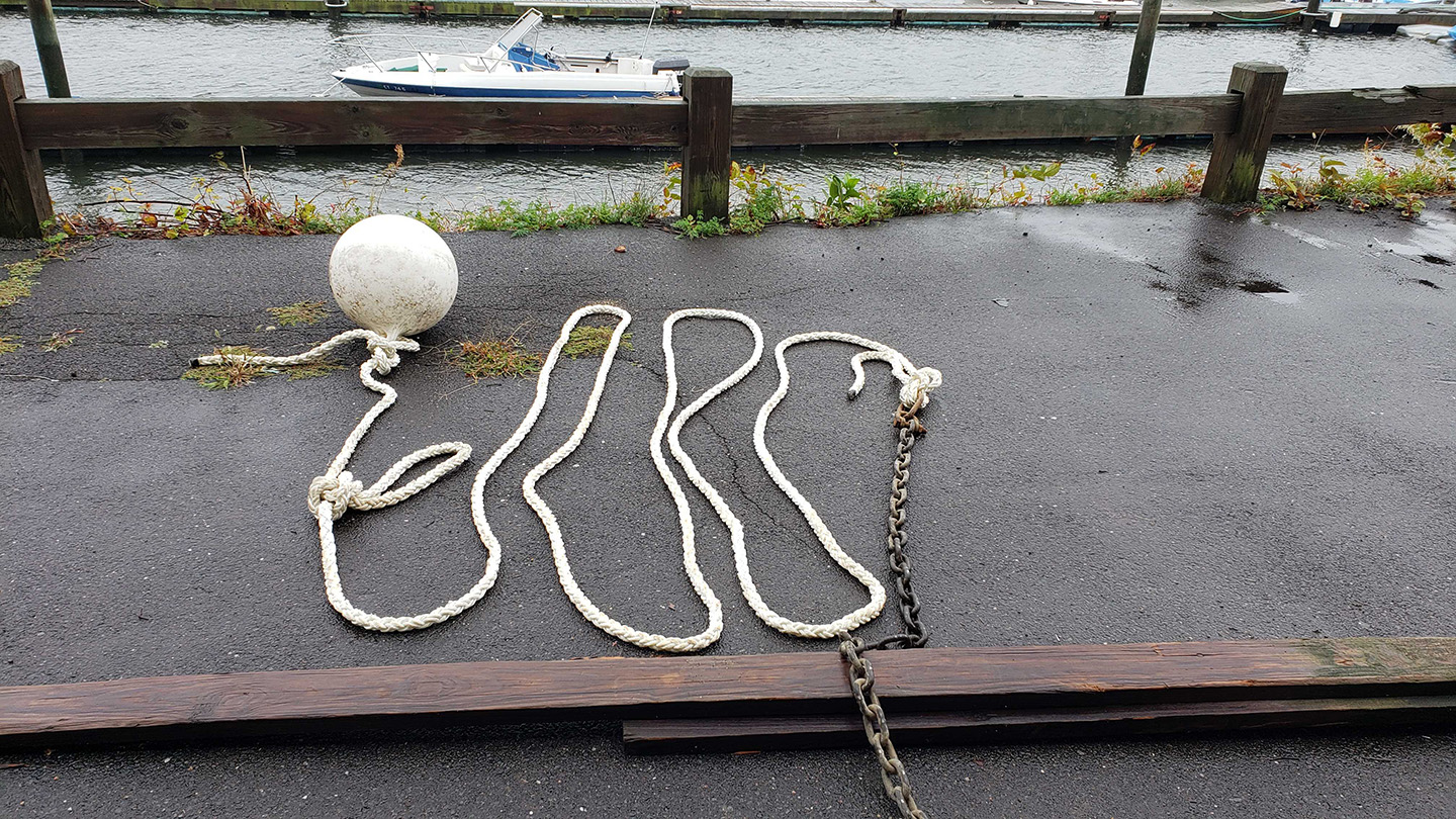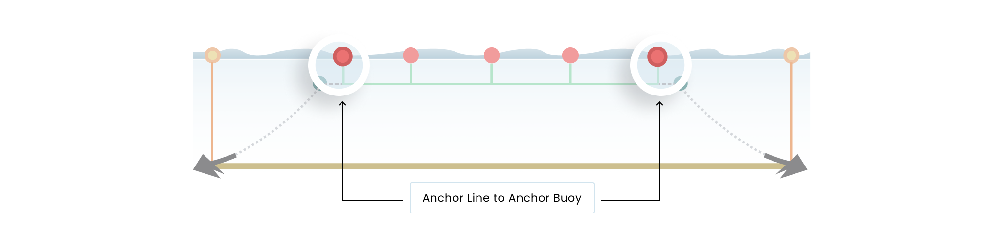 On a single-line array, the anchor line continues past the butterfly knot and the connection point to the growline, and can be tied directly to the anchor buoy.
