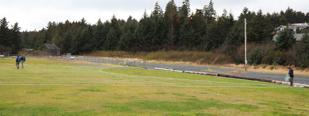 The trade-off is that the anchors it requires are much larger than those needed for single-line and 5-line arrays. One farm in Kodiak, Alaska uses pairs of 700-pound anchors at every corner of their multi-line catenary array. Similarly, there are fewer but larger buoys used to maintain proper buoyancy of the system.