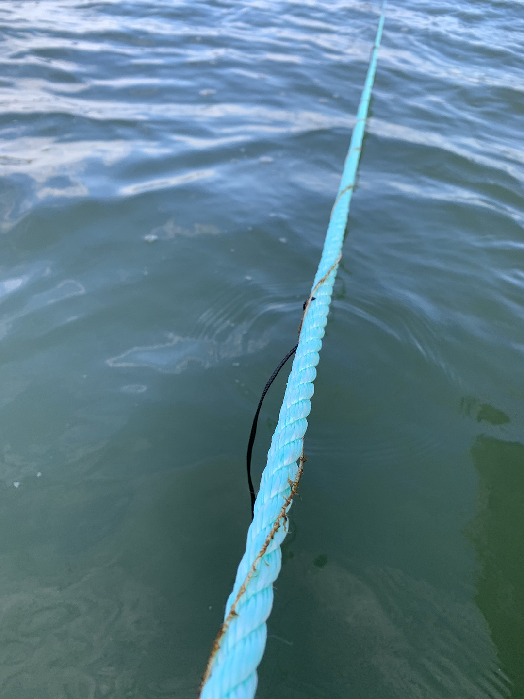 For connections to your growline buoys, we suggest sizing your buoy lines so that they’re around 4-8 feet in length. The goal of the growline buoys is to keep the kelp lines suspended at the optimal level for growth by being near enough to the surface to absorb the energy of the sun, but far enough below the waterline to absorb maximum nutrients. It’s important to note that during rough weather, your buoy lines can swing around and strip the kelp off your lines. They can also snag and become tangled with floating debris. Throughout the season you may want to adjust the length of your buoy lines depending on the type of growth you’re seeing on your lines and other issues that may arise.
