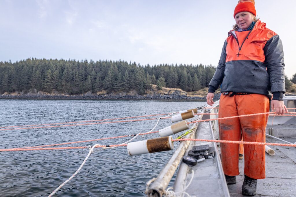 In terms of weather, an ideal day would be slightly overcast with minimal bouts of direct sunlight. Some rain is okay, but heavy rains can affect surface salinity and stunt the growth of the kelp. Calm weather with winds below 10 knots is best, since higher winds make it much more difficult for farmers to maneuver the boat, which in turn can damage the seed.