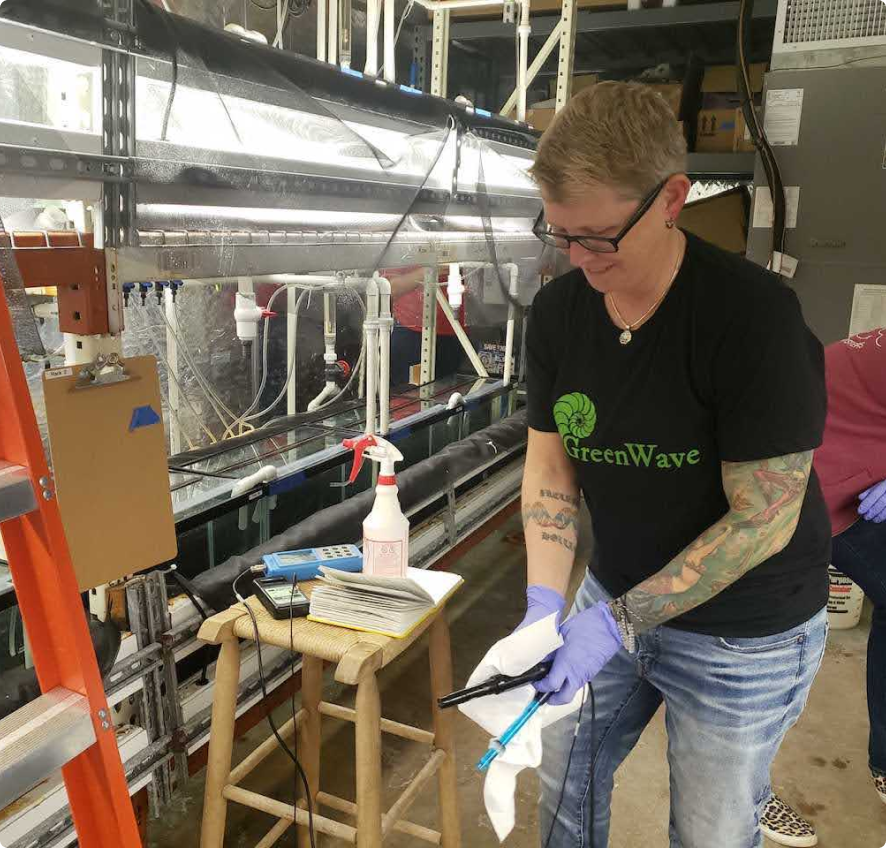 Your hatchery tank is tailored to be the perfect environment for your kelp seed to grow. Unfortunately, many other organisms also thrive in this environment. If not properly managed or contained, contamination in your hatchery can quickly spiral out of control. To be sure that you’re only growing kelp and not everything else that wants to hitch a ride, be hyper vigilant about keeping surfaces clean and reducing the risk of contamination.