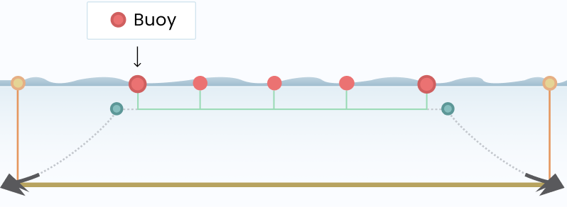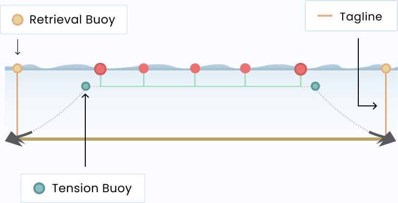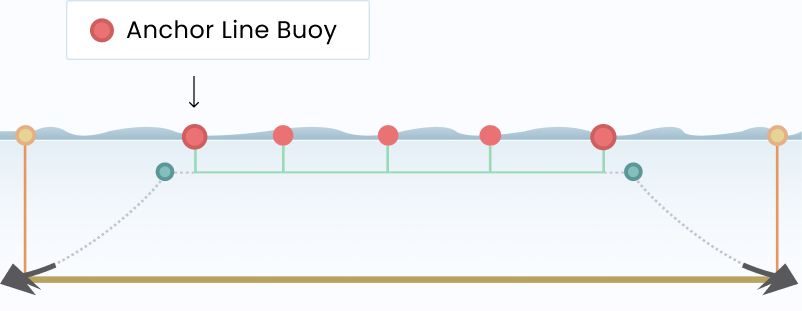 In the diagram, you’ll notice we’ve incorporated the use of a tensioning buoy along the span of the anchor line.