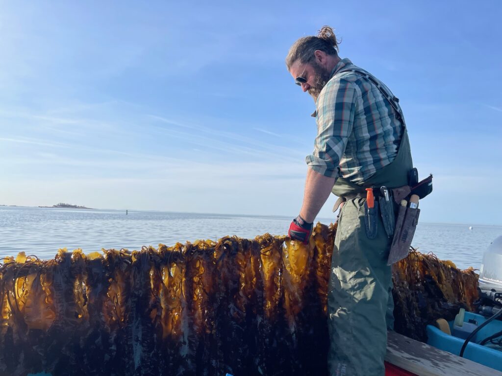 Farmer and researcher Mike Doall from Stony Brook University has pioneered a type of shallow-water kelp farming in the estuaries of Long Island that requires less than $100 per array in startup costs and can be fully accessed without a boat. This type of system doesn’t work in every environment, but it has been highly successful for farmers in Long Island. Learn more about this low-cost setup here.