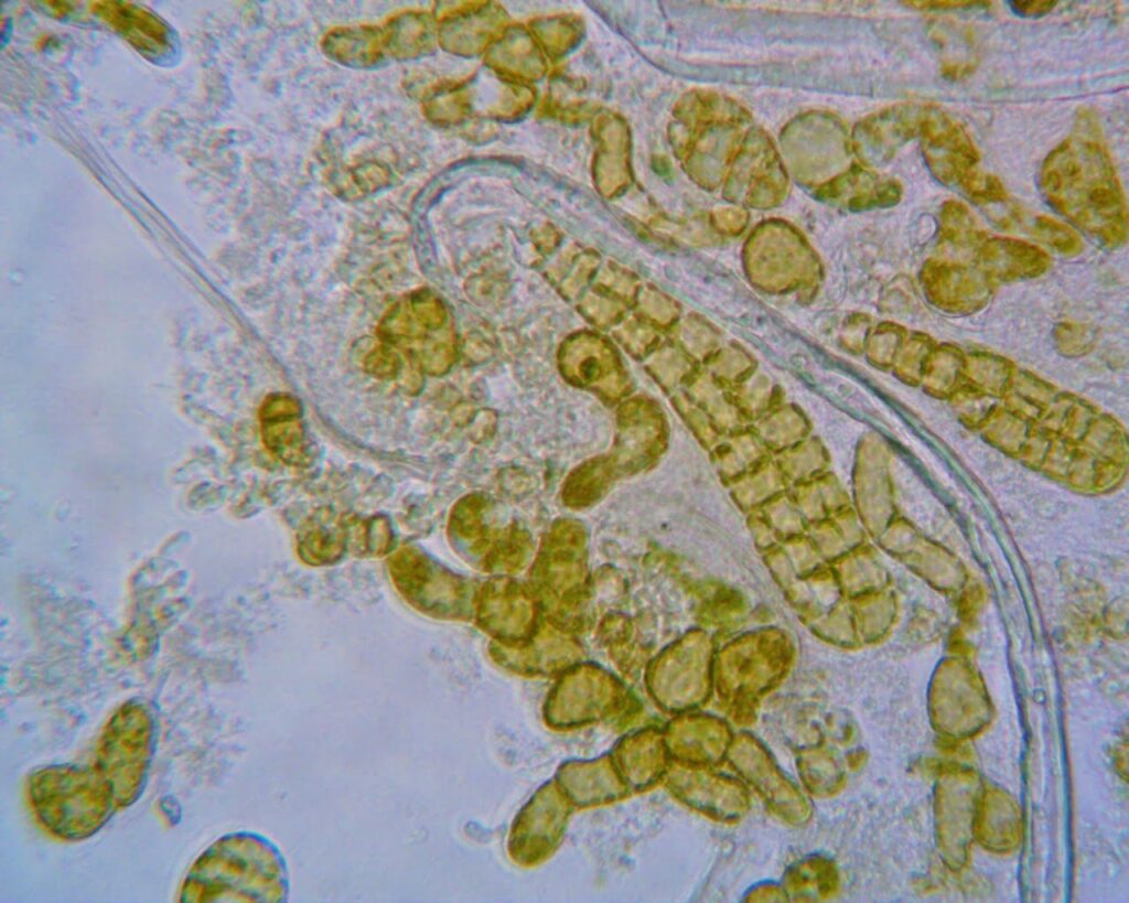 Male and female gametophytes will then produce eggs and sperm and undergo fertilization to form juvenile sporophytes, which should become visible under the microscope around week three. Amazingly, these tiny, little structures are just miniature versions of the long, beautiful kelp blades that will be growing on the farm in a few months!