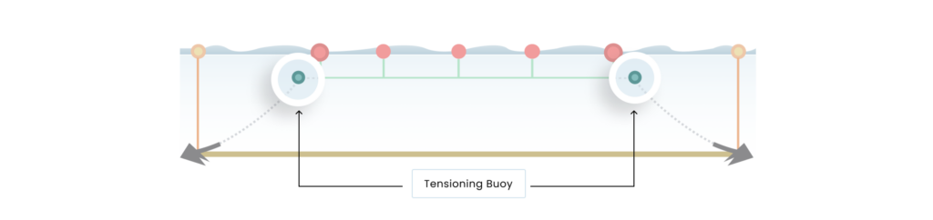 When the system is properly tensioned, the tensioning buoys should only be visible at the lowest tides.