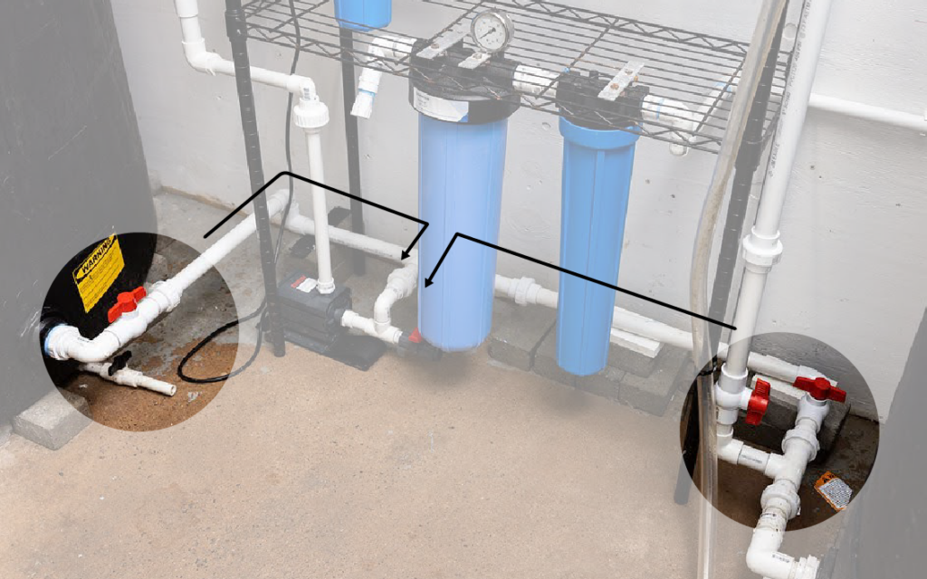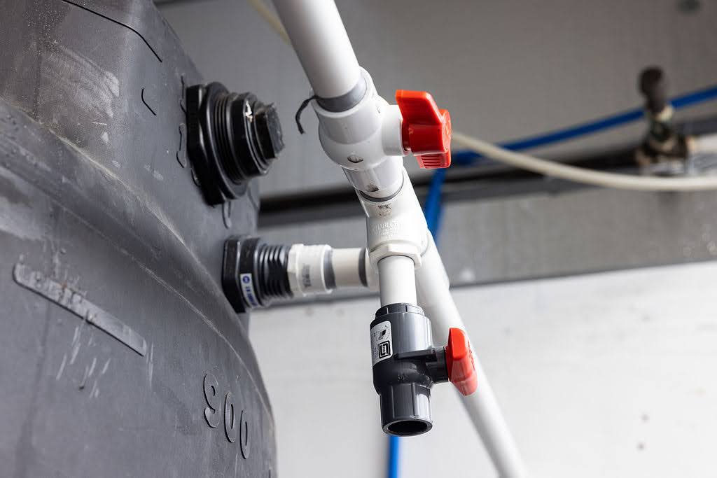 Once the skimming process is done, we need to redirect the water. Valves are turned to stop the water from going back to the protein skimmer and allow it to move to the next stage.