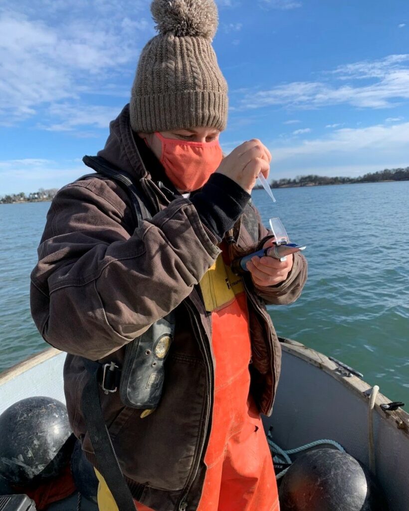 Water temperature can be measured with a marine-grade thermometer or with the chart plotter on a boat.