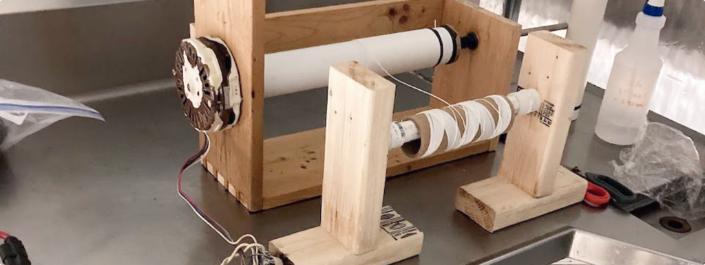Other hatcheries have used mechanisms from sewing machines, so the motor can rotate the spool while the speed is controlled by a foot pedal.