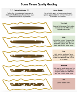 This document provides guidelines to sorus collectors and nursery practitioners on what sorus to use for seeding or starting cultures. The graphic details the levels of sorus quality and how to determine if sorus is clean enough for release.